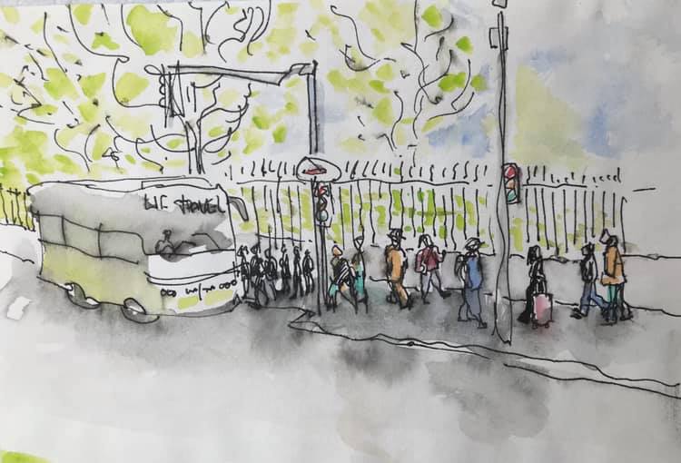 People standing, walking or swimming make perfect models for drawing.